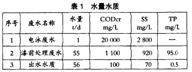 电泳废水主要产生于工件电泳后清洗过程中附着的浮漆和槽液。废水中含有电泳漆(如水溶性环氧树脂、乙醇胺、乙氰酸酯、酚醛树脂等)。)、颜料(如碳黑、氧化铁红、铅汞等。)、填料(如钛白粉、滑石粉等。)、有机溶剂(如三乙醇胺、丁醇等。)和少量金属离子。以宁波某台资企业电泳废水产生的废水为例。预处理混合废水的平均COD为1100mg/L,水量为50m3/;电泳液定期更换2万mg/L的废水COD,水量为1.3/D。废水有机物浓度高,难以通过常规生物工艺降解,必须通过强氧化工艺预处理。